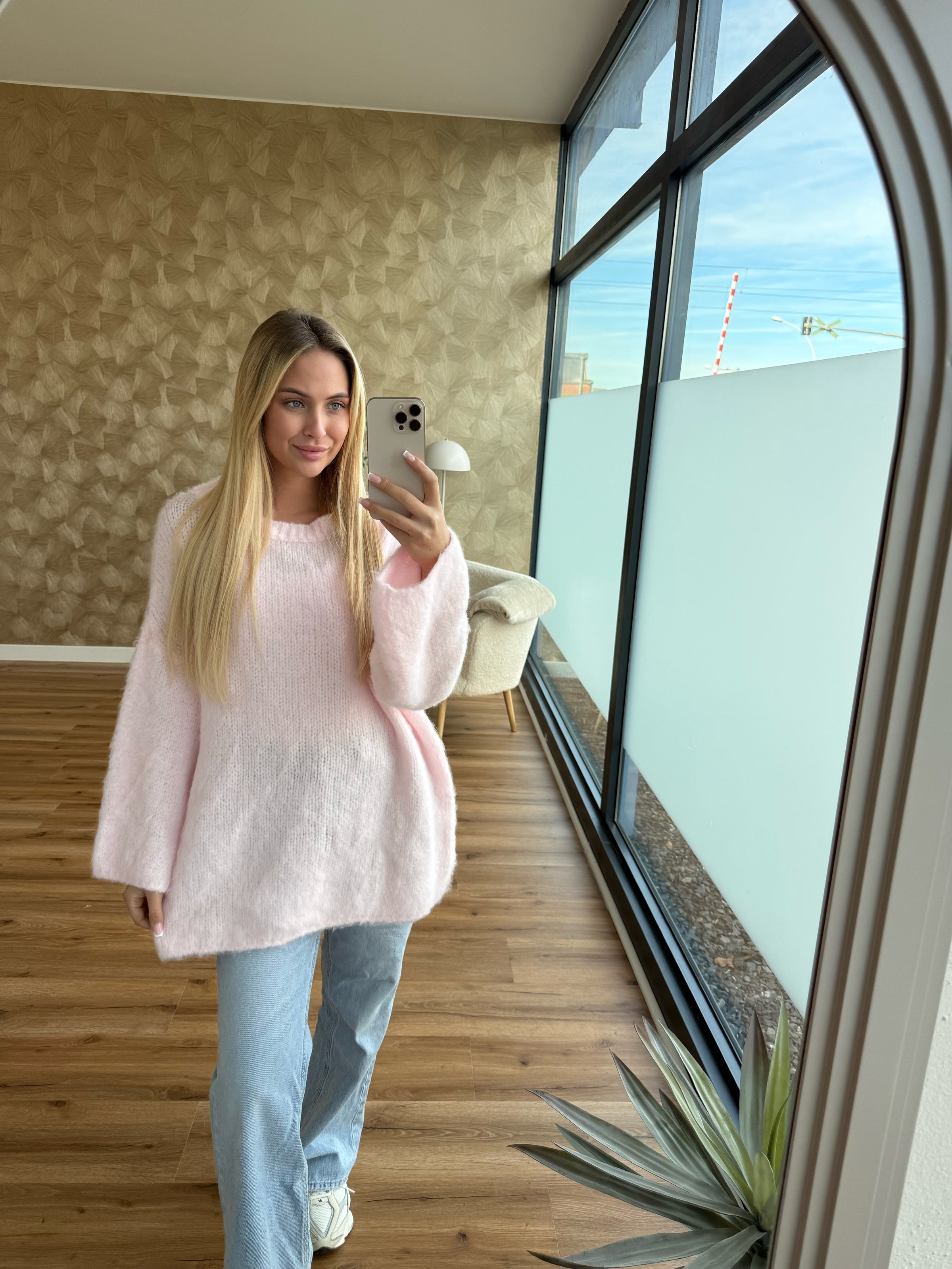 Unser wunderschöner Pullover ist in Einheitsgröße erhältlich und passt bis Größe 46.