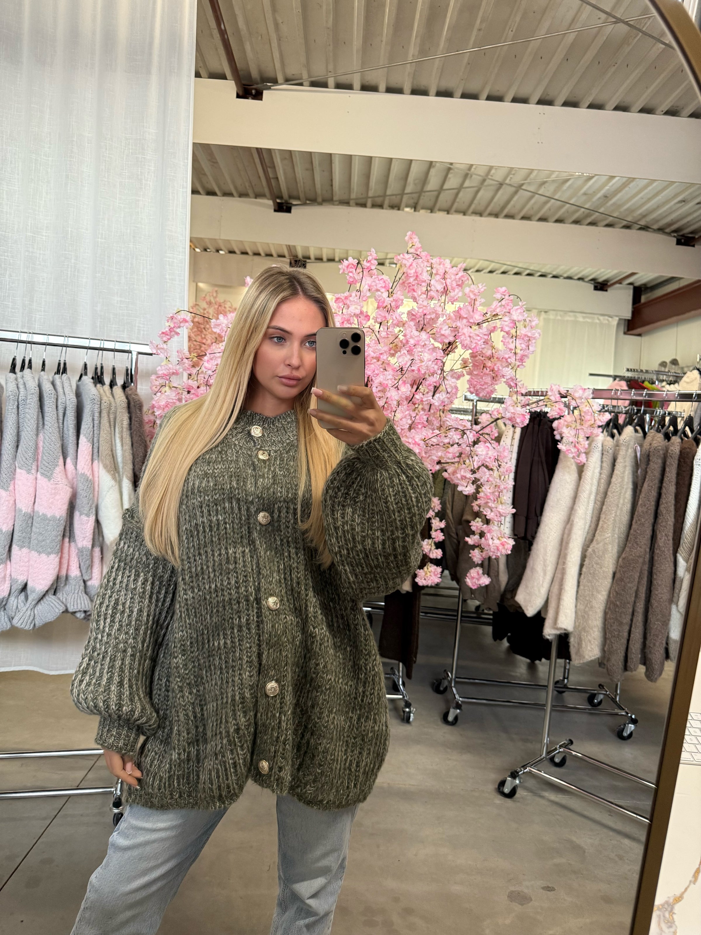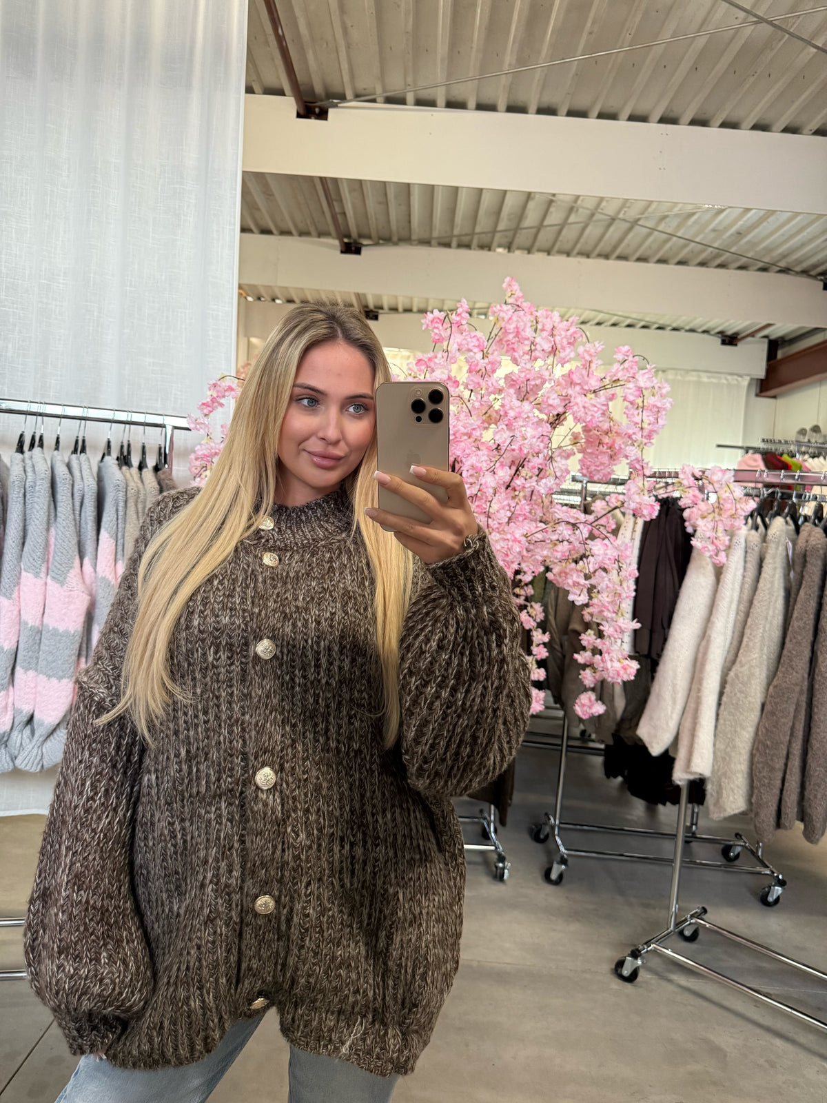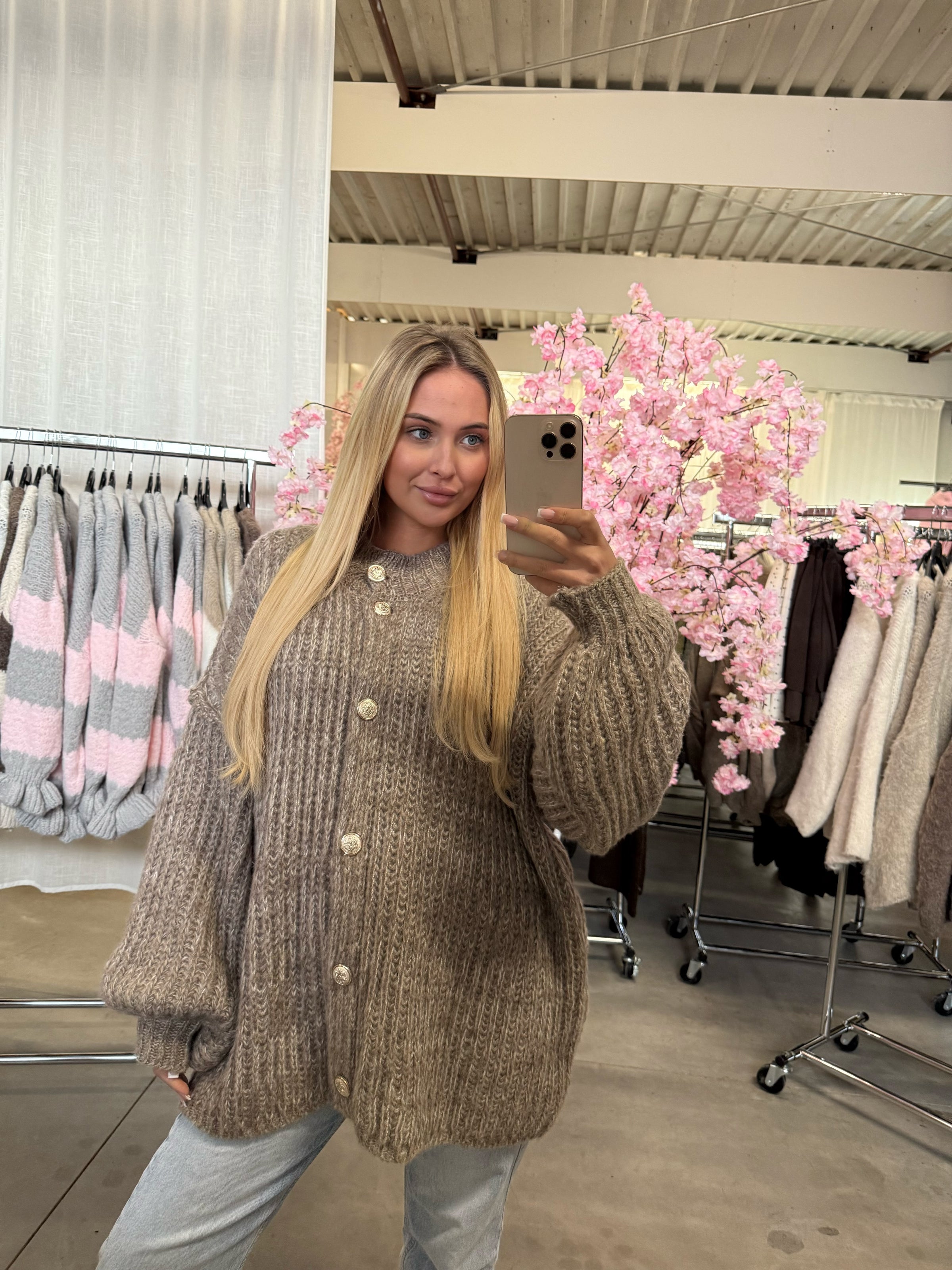 Diese Strickjacke ist in Einheitsgröße und eignet sich für Träger bis zur Größe 42.